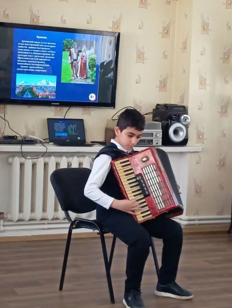 Финалом акции стал концерт учеников Апшеронской МБУДО ДШИ под руководством педагогов: Борискиной Н.Ф., Кнышова И.Н и Захарова Л.И. : « Мозаика культур великой страны» - где прозвучали стихи и песни разных народов, игра на музыкальных инструментах и зажигательные танцы. Концерт показал, что народные инструменты — это не только история, но и живая, развивающаяся культура. Народная музыка объединила зал и создала эмоциональную связь с культурой предков. Произведения продемонстрировали, как музыка передает дух, обычаи и мировоззрение народов. Зрители отметили высокое исполнительское мастерство участников и познавательный характер мероприятия. Концерт стал важным событием в популяризации народно-инструментального искусства, подчеркнув, что музыкальное наследие — это живой организм, который необходимо сохранять для будущих поколений.
